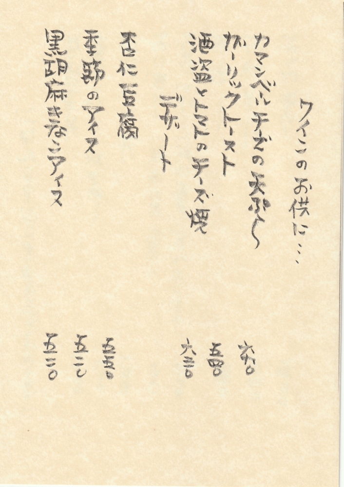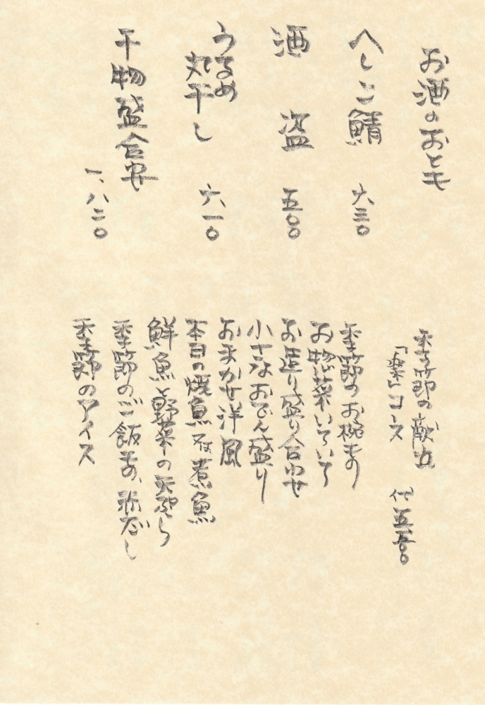 季節のお任せ献立「楽」コ-ス・5500円税込