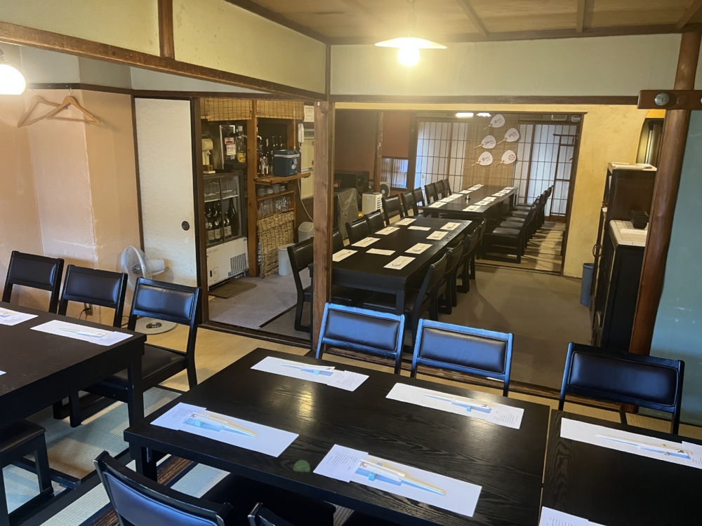 奥は坪庭のあるお座敷(椅子席)です。2名卓×2 、 4名卓×2御座います。